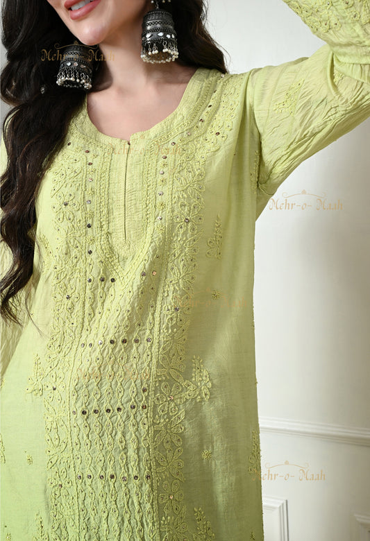 Aks Viscose Georgette Chikankari kurti with Mukaish