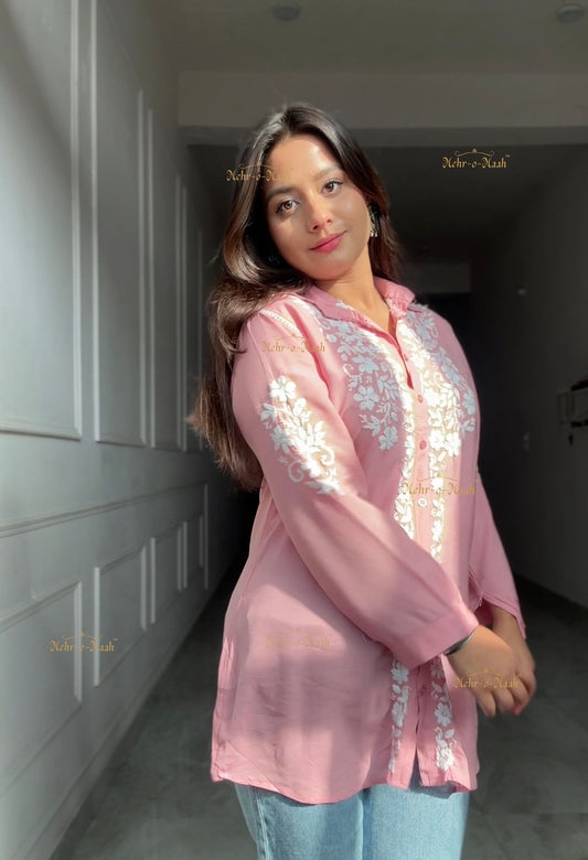 Best SellerBahaar short viscose georgette Chikankari Kurti
