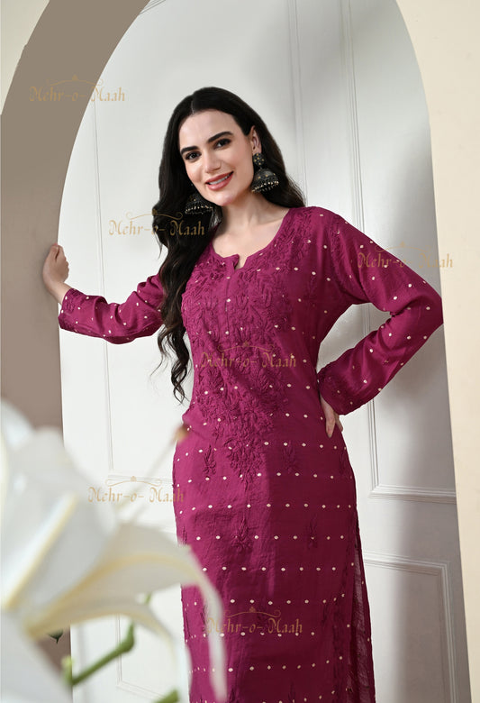 Aks Viscose Georgette Chikankari kurti with Mukaish