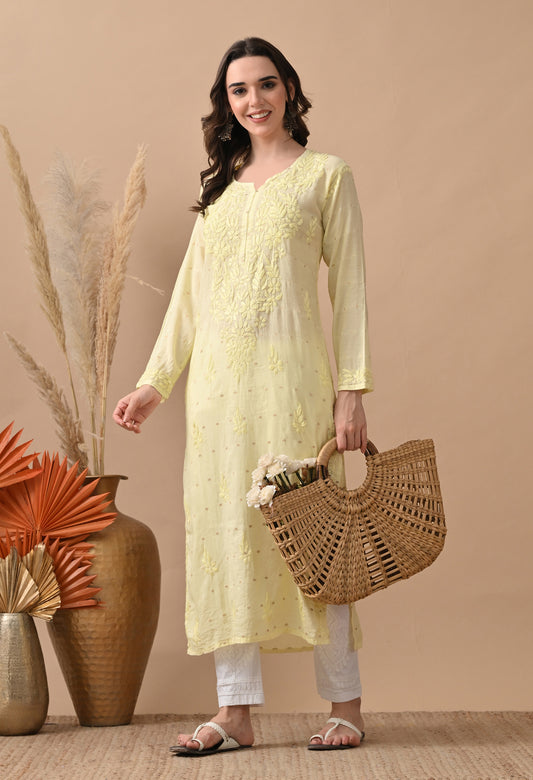 Anam Chanderi Silk Chikankari Kurti with Mukaish detailing