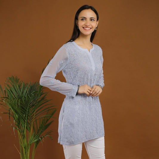 Best SellerBahaar short viscose georgette Chikankari Kurti