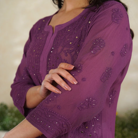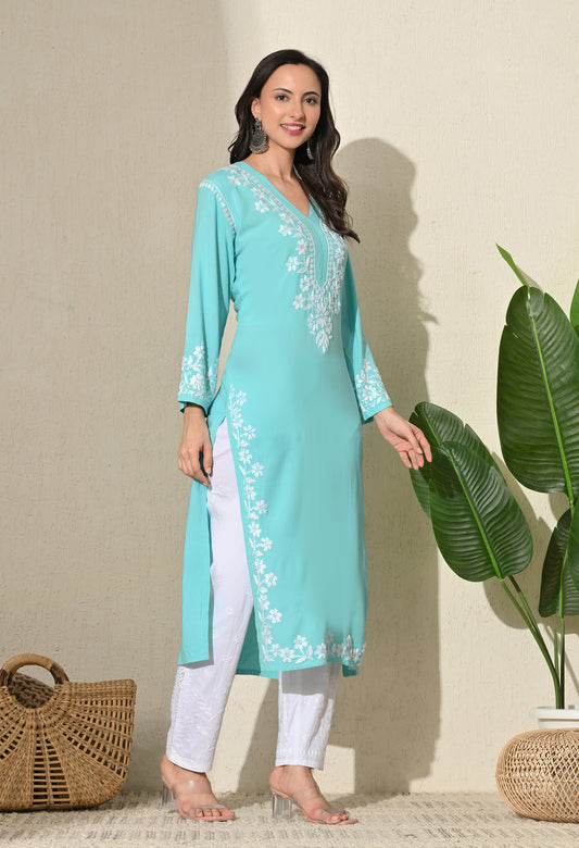 Antara Viscose Georgette Chikankari Kurti with Mukaish work