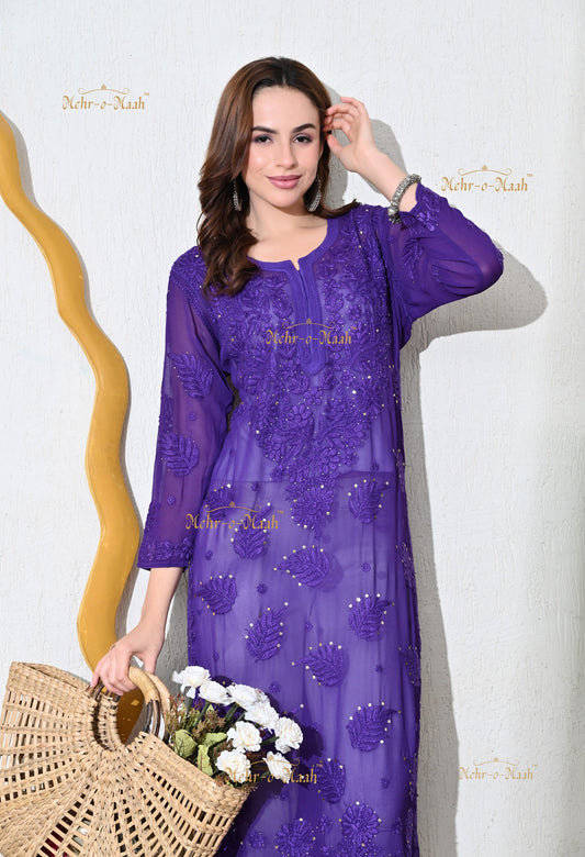 Aks Viscose Georgette Chikankari kurti with Mukaish