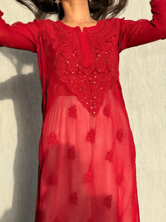 Alankriti Viscose Georgette Chikankari Kurti with Mukaish