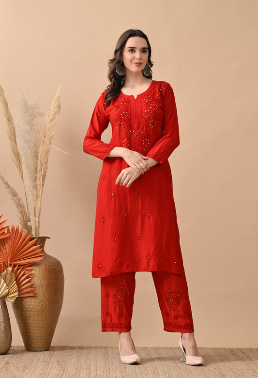 Best SellerAnam chanderi silk chikankari set with pants