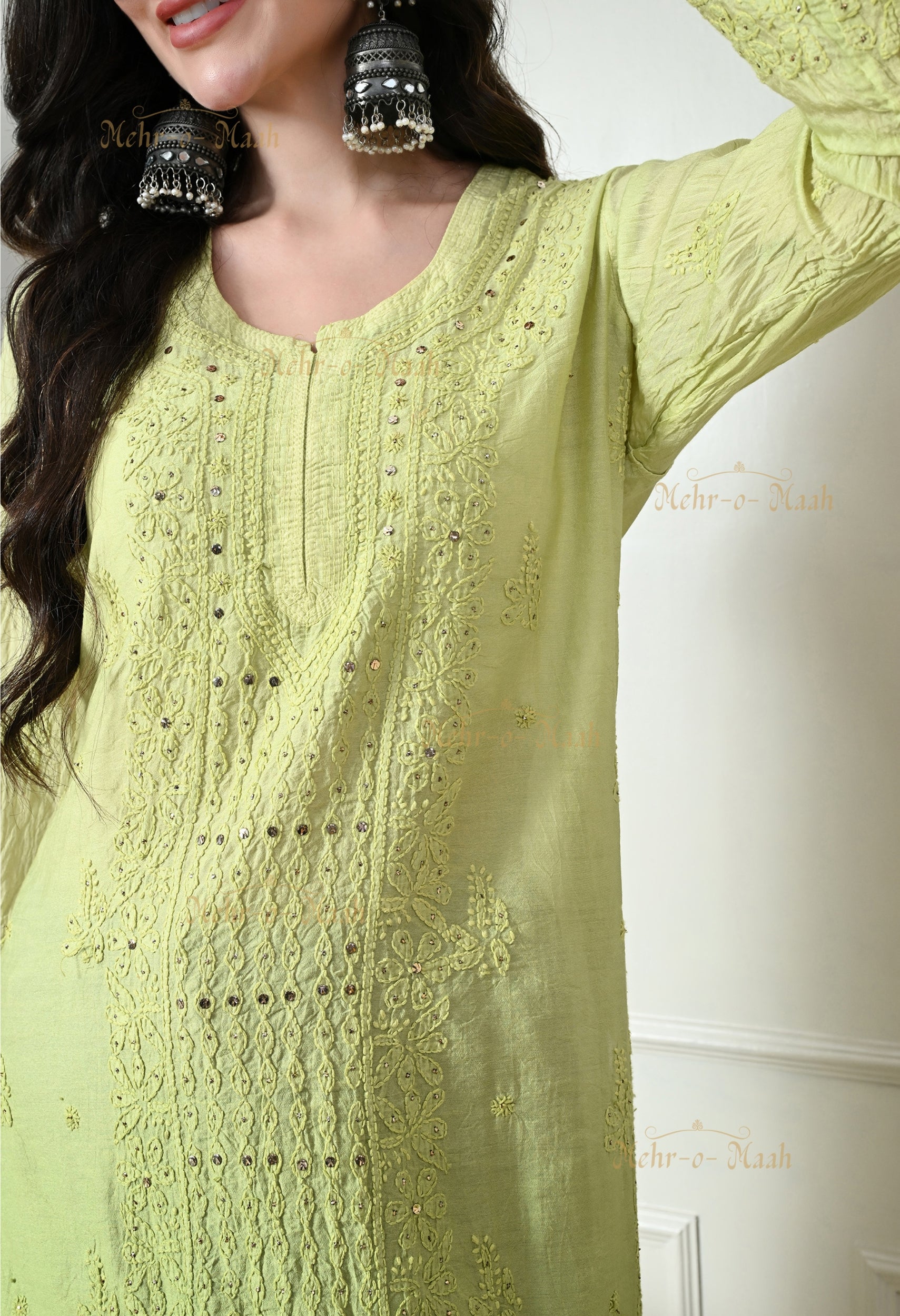 - Embroidery & Embellishments: Chikan Embroidery with Mukaish