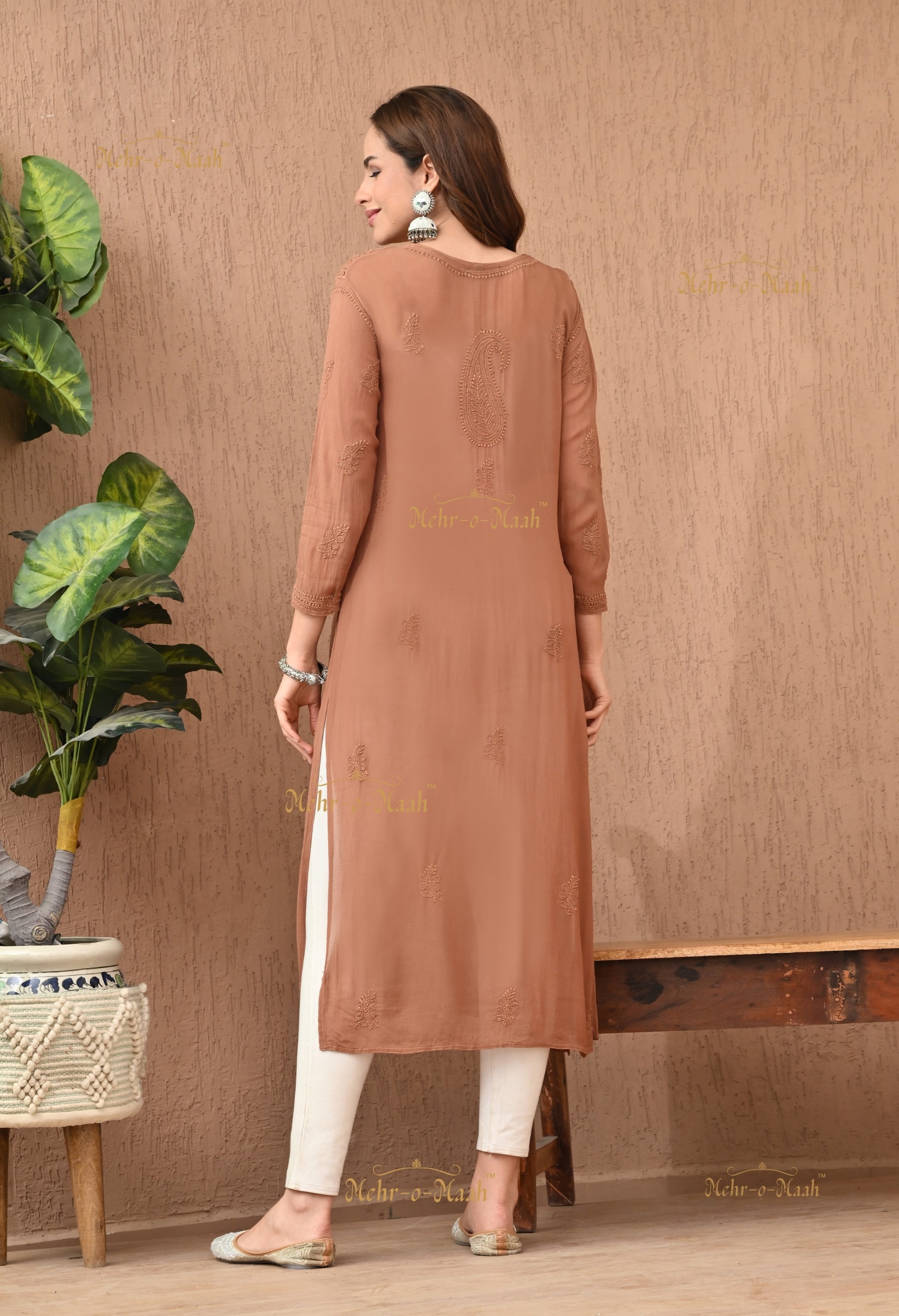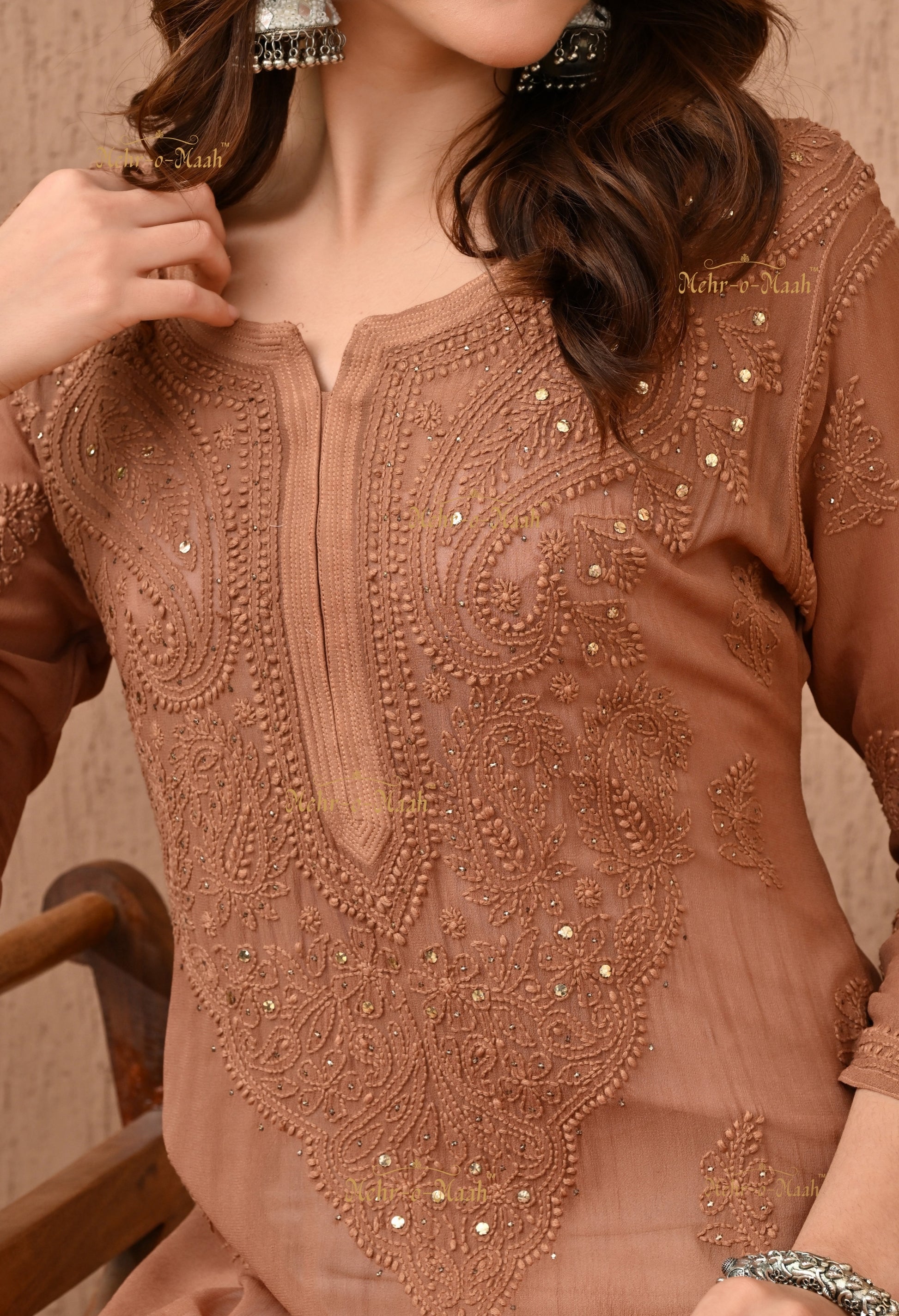 - Embroidery & Embellishments: Chikan with Mukaish detailing