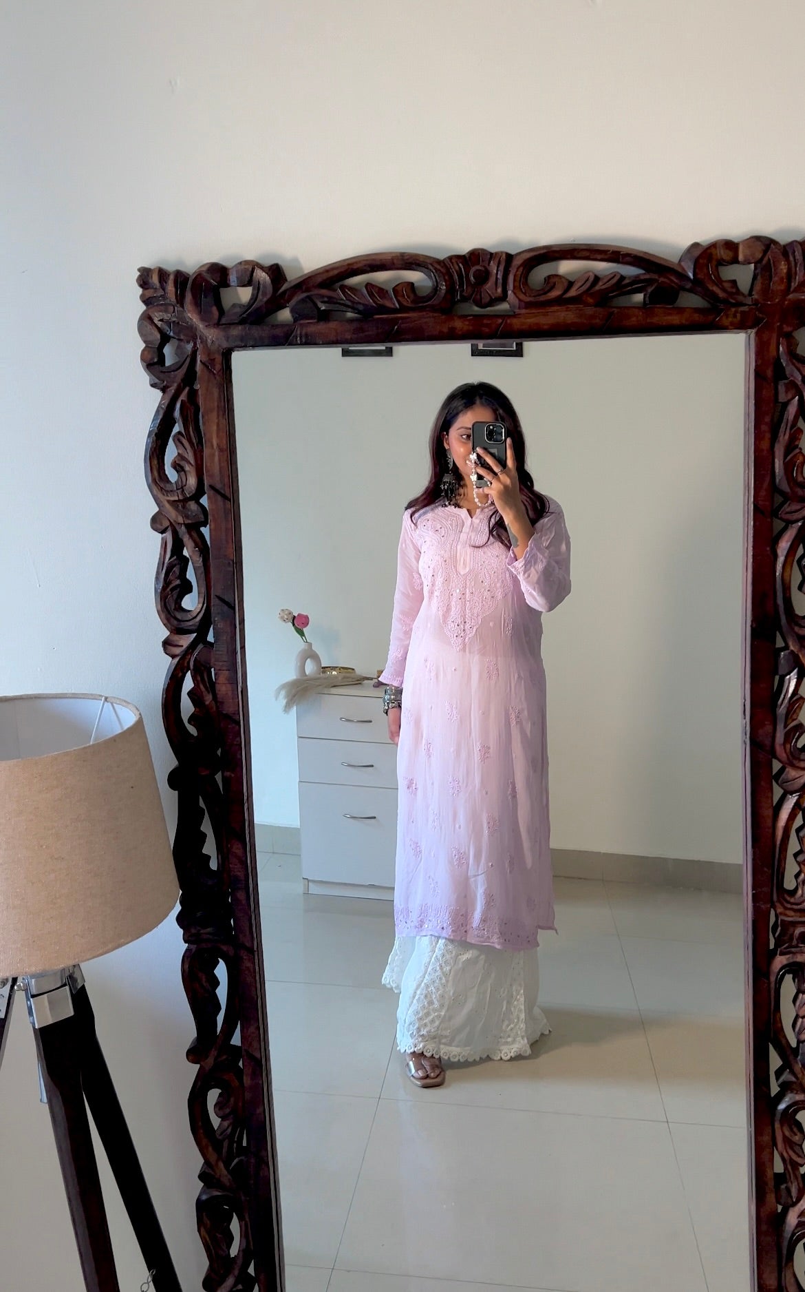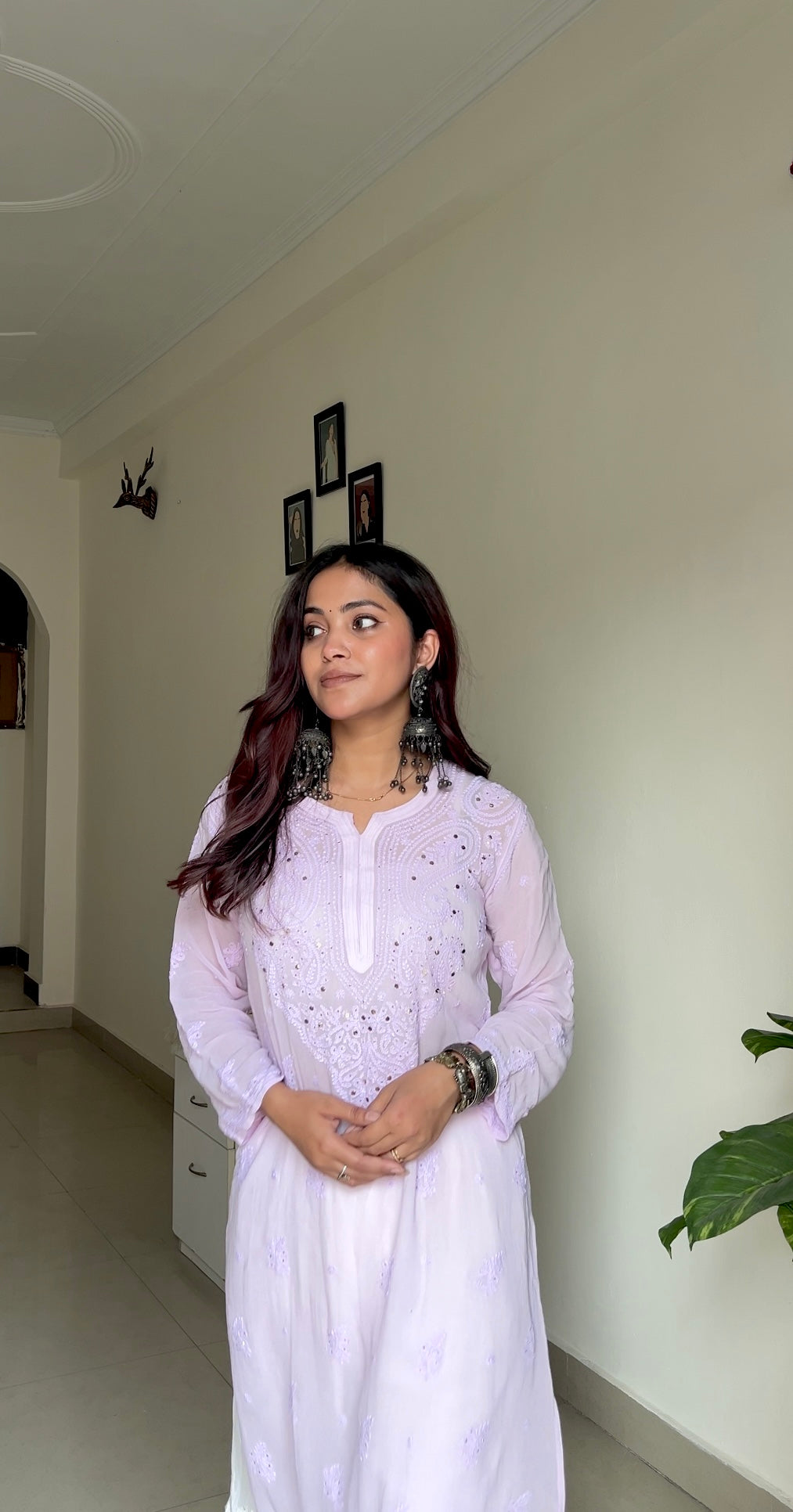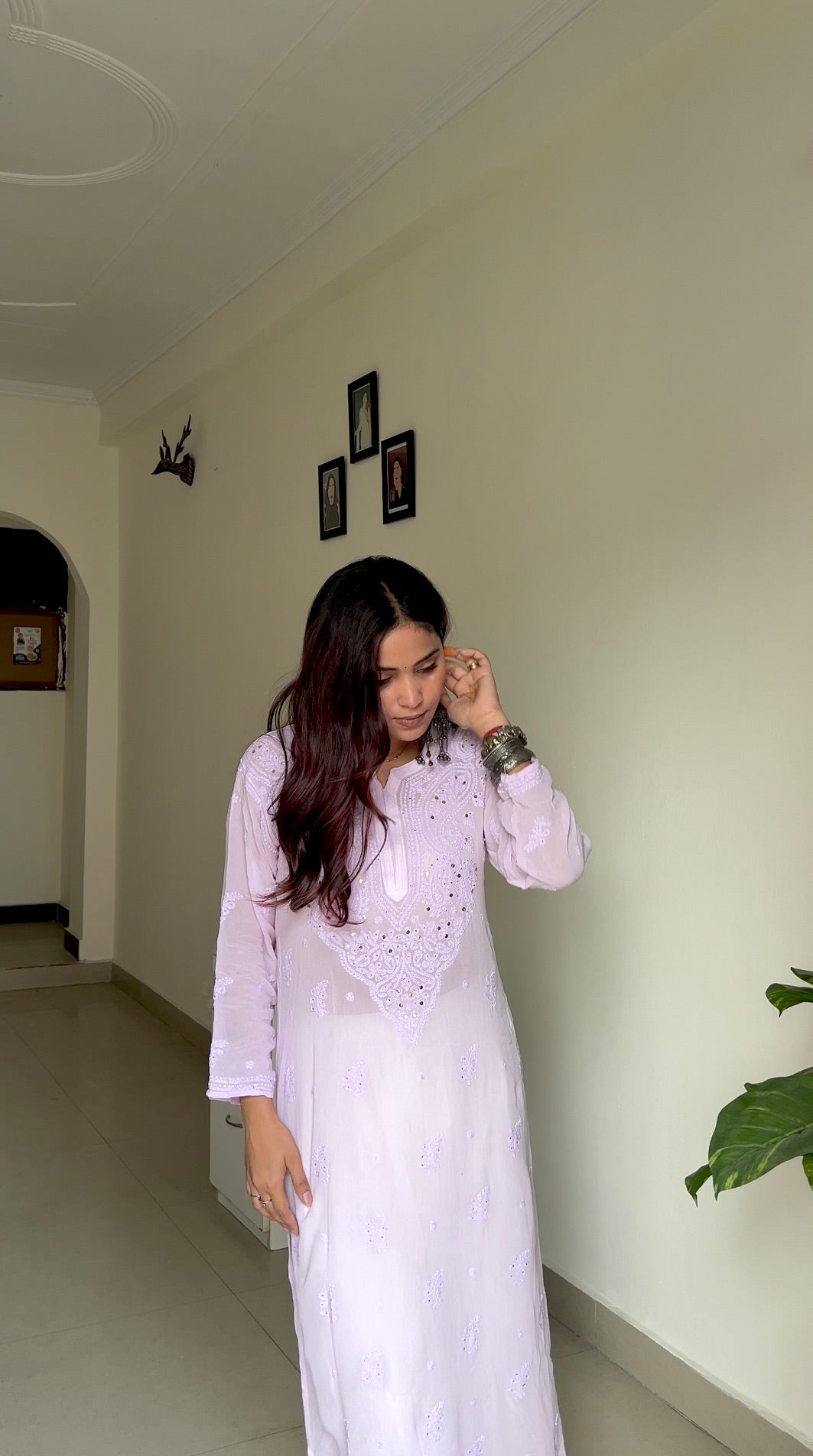 - Embroidery & Embellishments: Chikan with Mukaish detailing